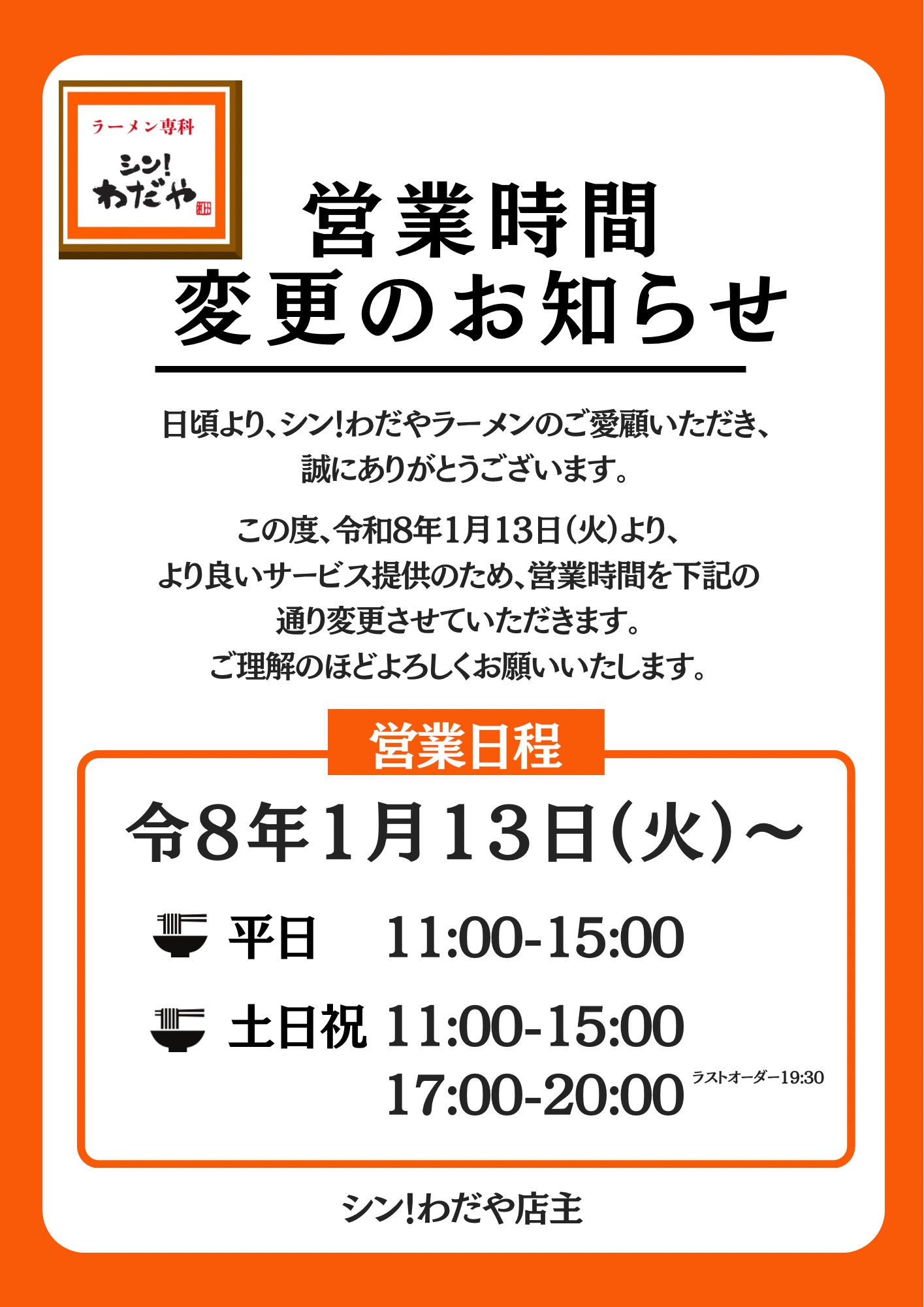 2026年1月12日 / 最終更新日時 : 2026年1月12日 ボートレースチケットショップ 金峰 イベント情報 【加治木】ラーメン専科シン!わだや営業時間変更のお知らせ \ 最新情報をチェック / FacebookXBlueskyHatenaCopy