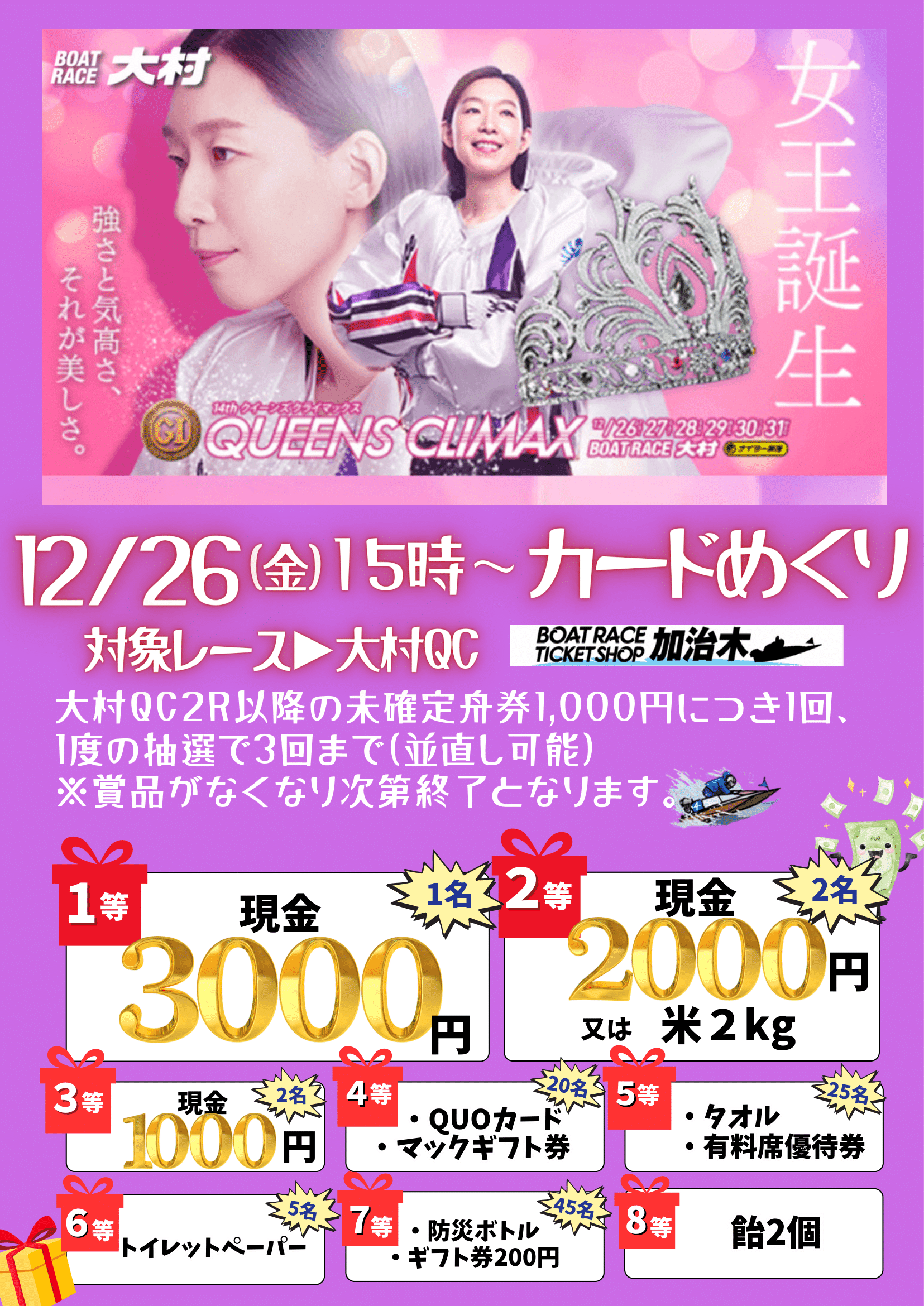 2025年12月11日 / 最終更新日時 : 2025年12月19日 ボートレースチケットショップ 金峰 BTS加治木 【加治木】12月イベントのお知らせ \ 最新情報をチェック / FacebookXBlueskyHatenaCopy