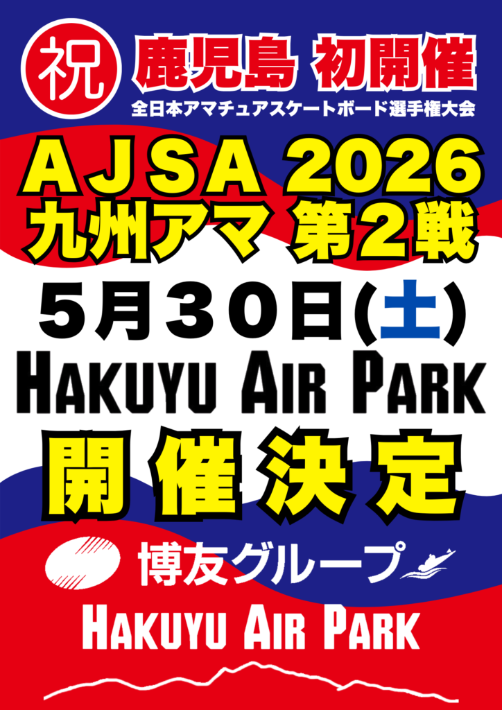ボートレースチケットショップ金峰に隣接しておりますHAKUYU AIR PARKにて、鹿児島発開催となる日本スケートボード協会主催のアマチュア選手権(九州大会)が開催されることが決定いたしました。