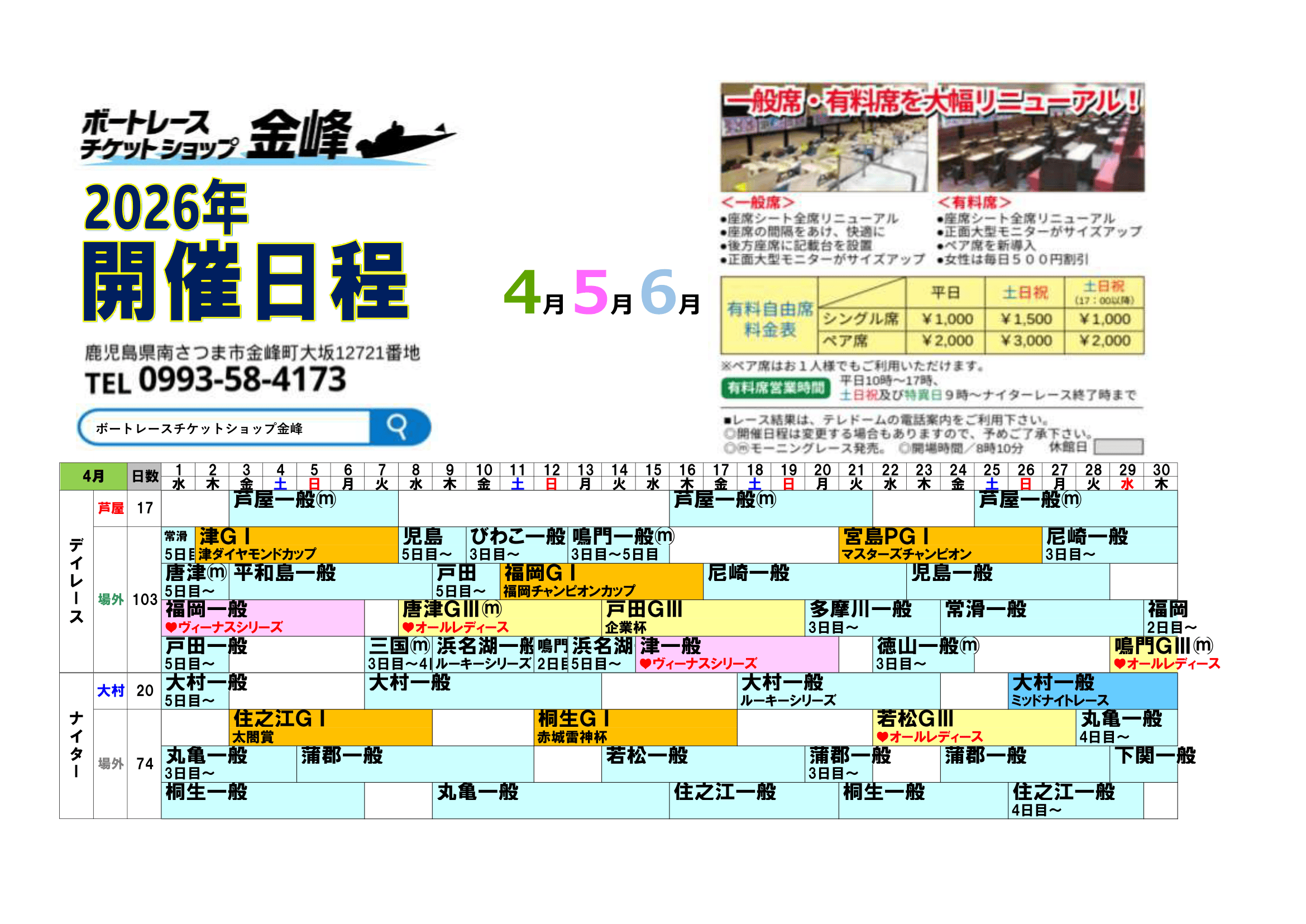 蒲郡初日 → 桐生最終日 へ変更